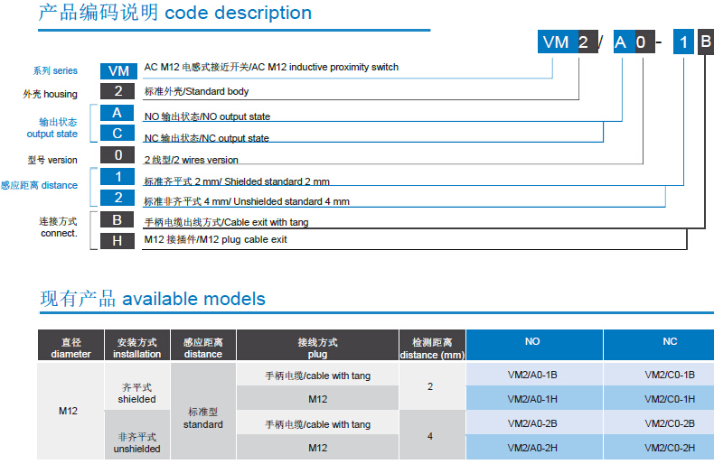 AC M12 圓柱形電感式傳感器 Cylindrical M12 in AC inductive sensors