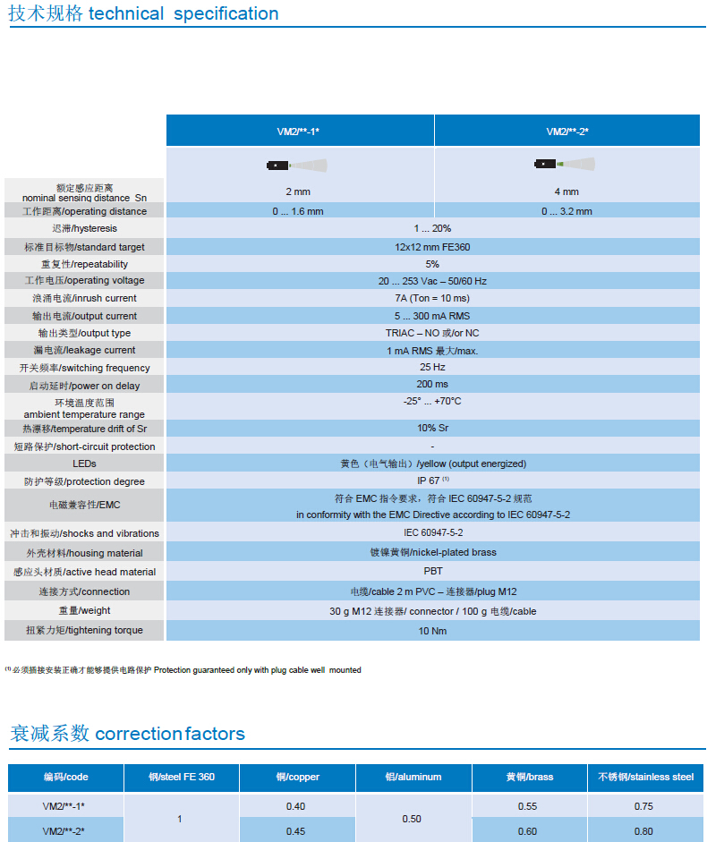 • 輸出方式:電纜和 M12 接插件 Output: cable and M12 plug cable exit