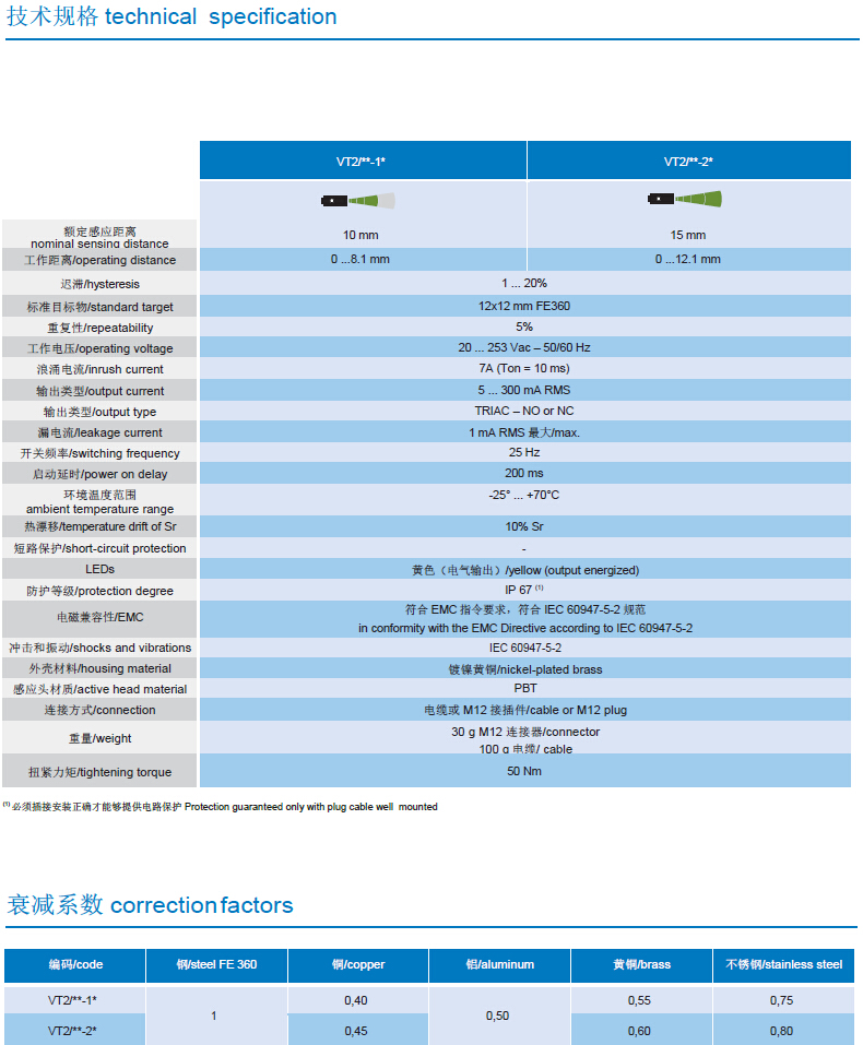 • 輸出方式:電纜和 M12 接插件 Output: cable and M12 plug cable exit