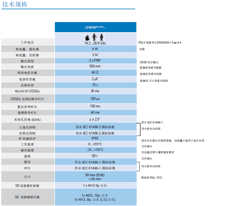• 4類光幕產品符合 IEC 61496-1 和 IEC 61496-2 國際標準