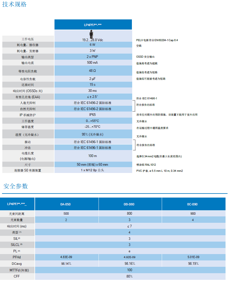 4級安全光幕,安全光柵,LP4PF/0A-050,墨迪 Micro Detectors
