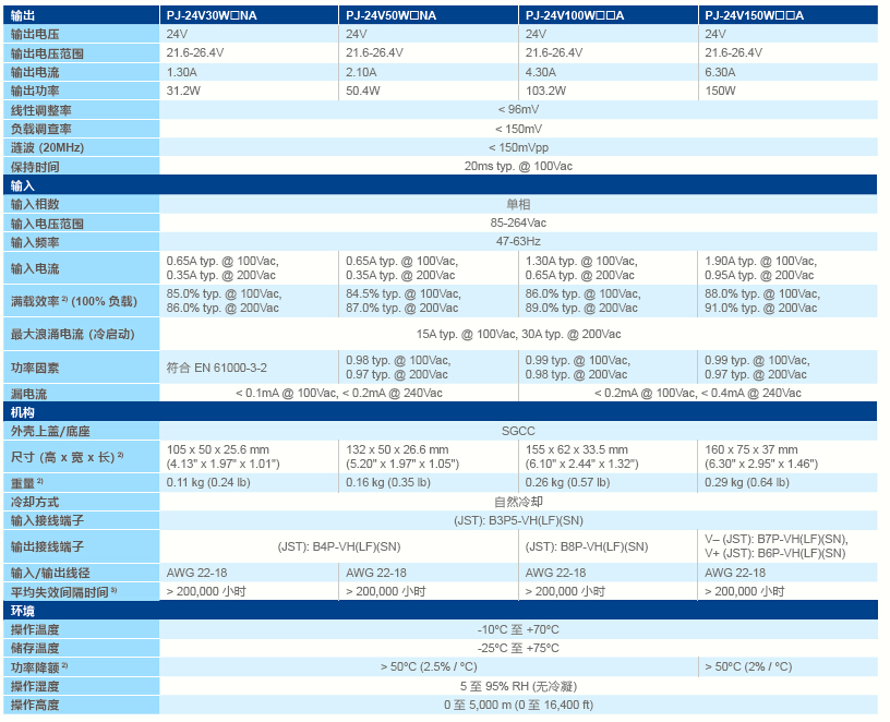 符合諧波電流?IEC/EN 61000-3-2,?A 類標準; A?類標準與?D?類標準(50W 及以上機種)