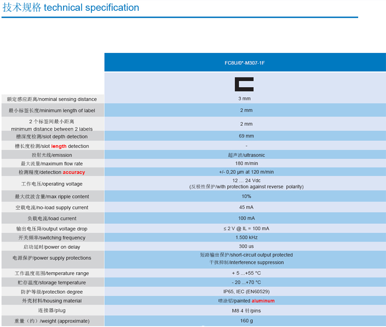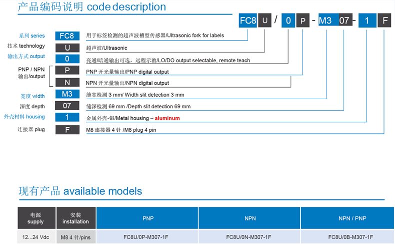 越聲波標簽檢測傳感器,超聲波傳感器,FC8U/0N-M307-1F,進口傳感器,標簽傳感器