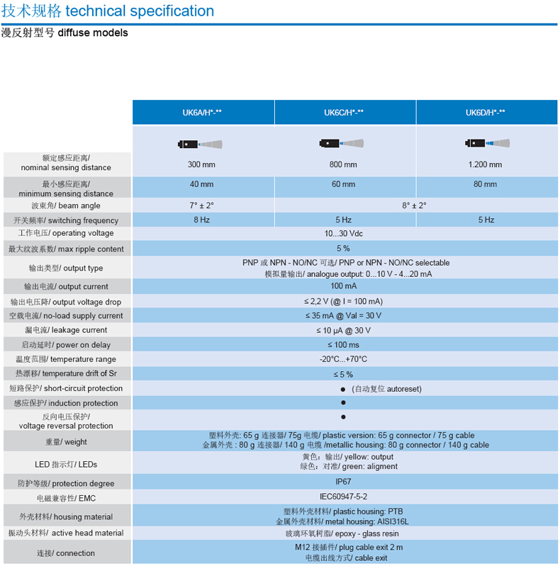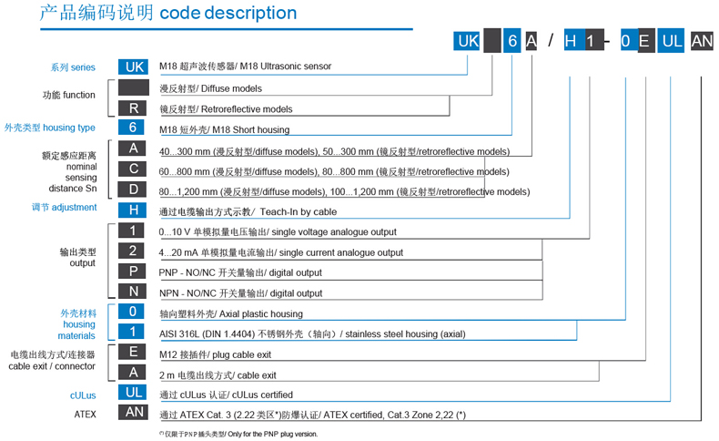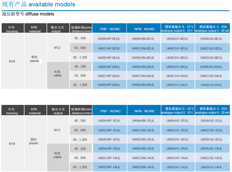 M18 圓柱形短體漫反射&鏡反射 超聲波傳感器 UK6 帶示教按鈕