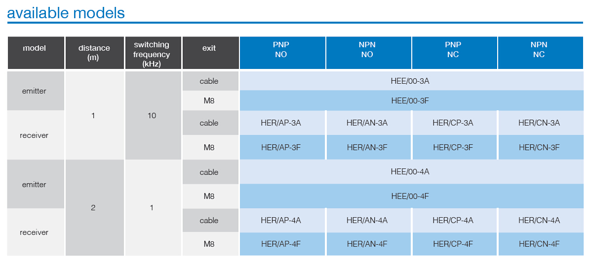 • 高開關頻率的 M8 對射型產品 M8 through beam models with high switching frequency