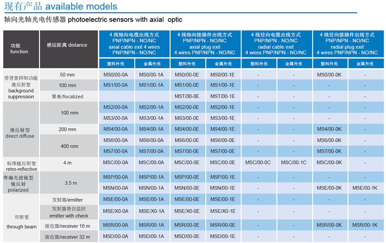 • 徑向光軸(MP)型產品 Models with right angle optic (MP)