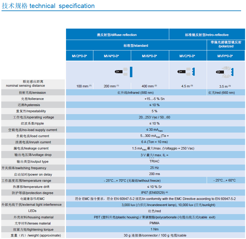 墨迪M.D.光電傳感器 ,MV4/A0-0E,墨迪 Micro Detectors