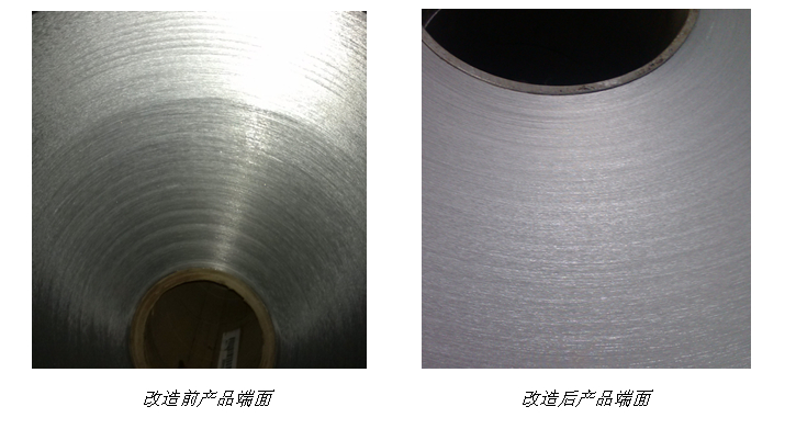 據回訪,該設備工作正常,因工藝要求,目前生產速度為60m/min(最高可達80m/min),速度較改造前提高了50%,且分條幅寬誤差在20個絲以內,整體端面平整。
