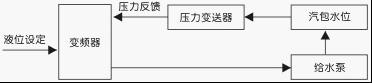 給水泵變頻改造閉環控制原理框圖如圖所示,采用壓力變送器、變頻器、給水泵組成的壓力閉環回路自動控制給水泵的轉速,使汽包水位保持穩定值。