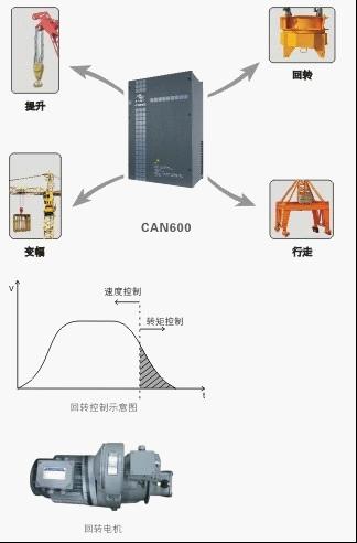 ■ 分布式控制: 改變傳統的集中控制方式,對提升、回轉、變幅等環節采用獨立控制,從而提高系統的可靠性,使控制布線更合理; ■ 一體化方案: 采用電動機驅動與起重邏輯控制有機結合的方式,省去了原系統中的PLC,減少潛在故障點,簡化系統接線、調試簡單靈活,代表未來起重機控制的發展方向; ■ 集提升、回轉、變幅、行走四種功能于一體,方便用戶切換使用功能; ■ 起重機專業邏輯設計: 集多年起重機行業設計的經驗,設計了專家級、廣泛應用的起升機構的控制和安全邏輯,包括時序配合、防溜鉤、恒功率運行等功能,為配套客戶提供完美的解決方案; ■ 創新的回轉控制: 采用特殊轉矩控制方式,適配專用回轉電機,簡化回轉機構,為客戶降低成本。
